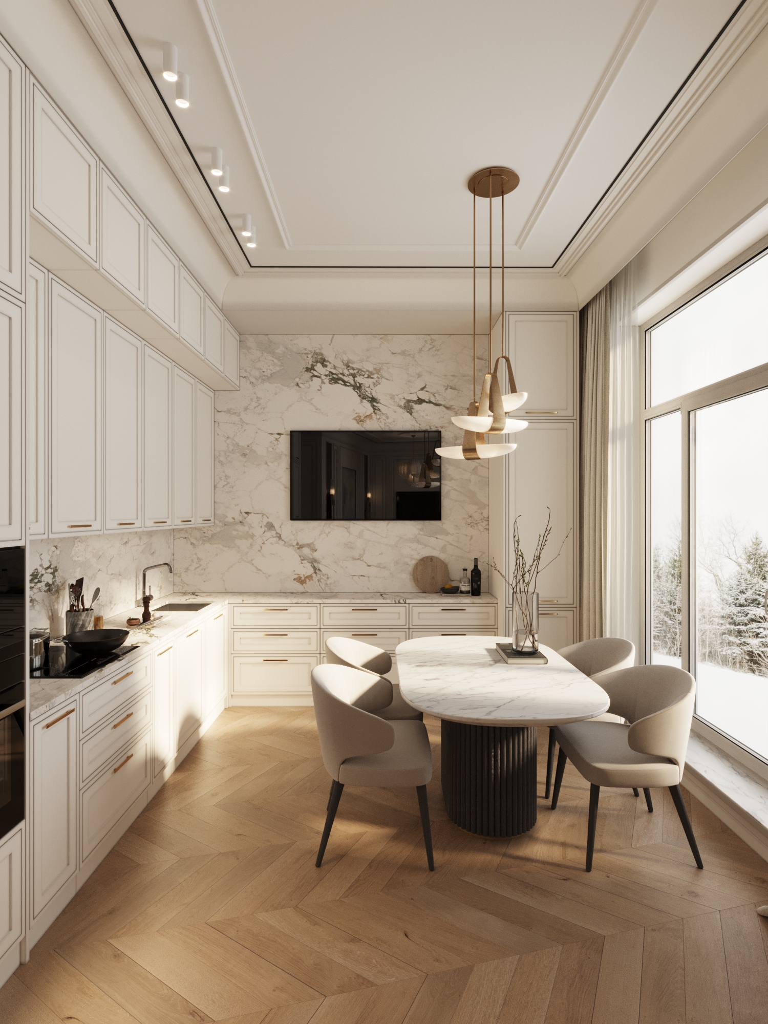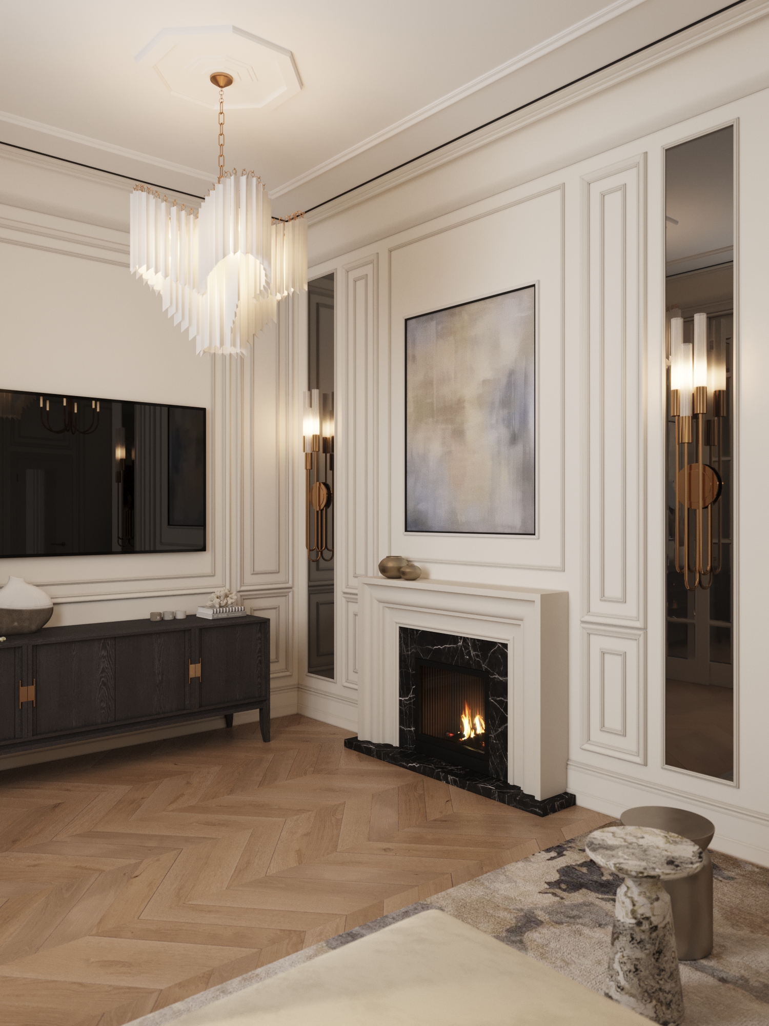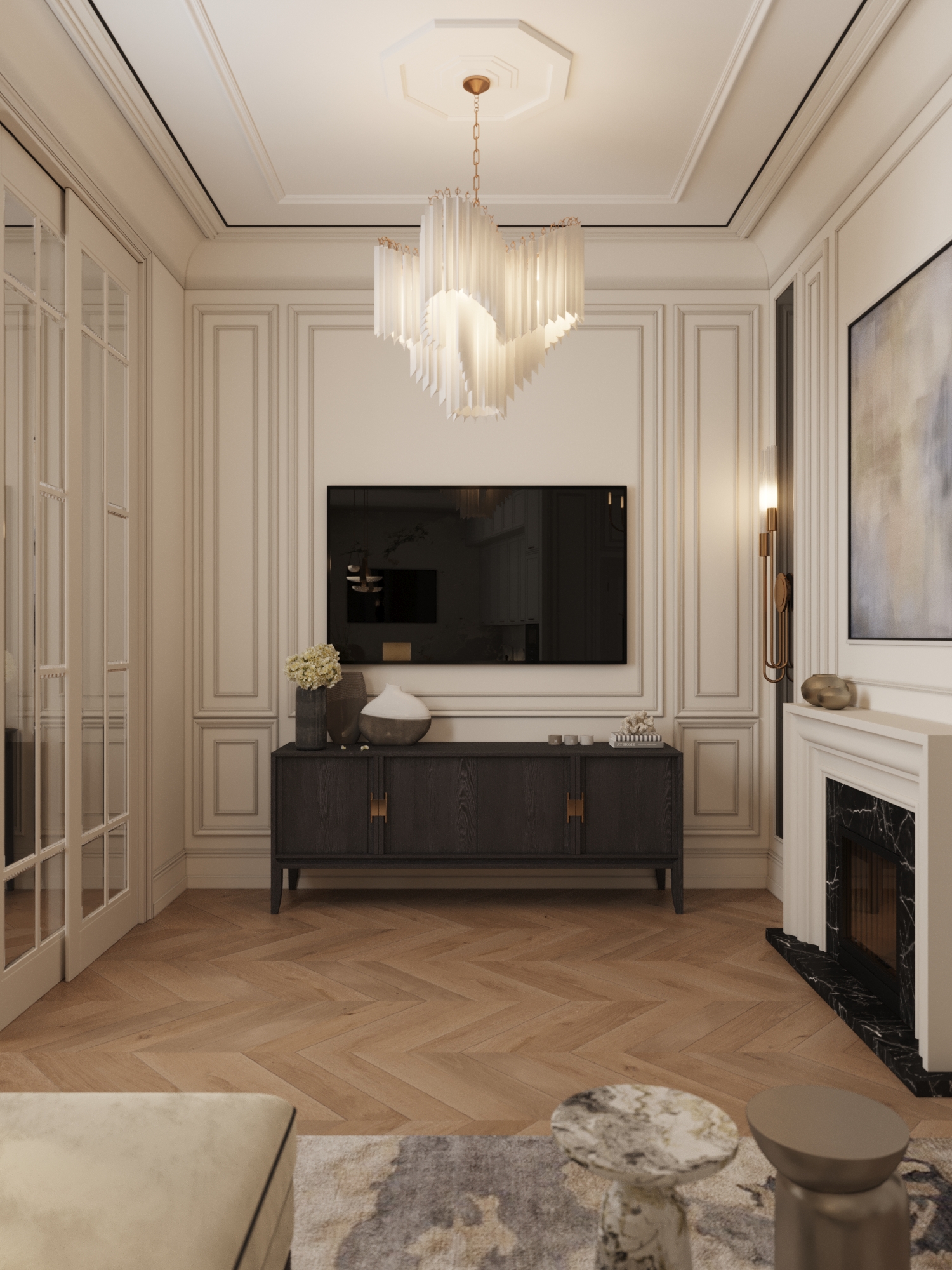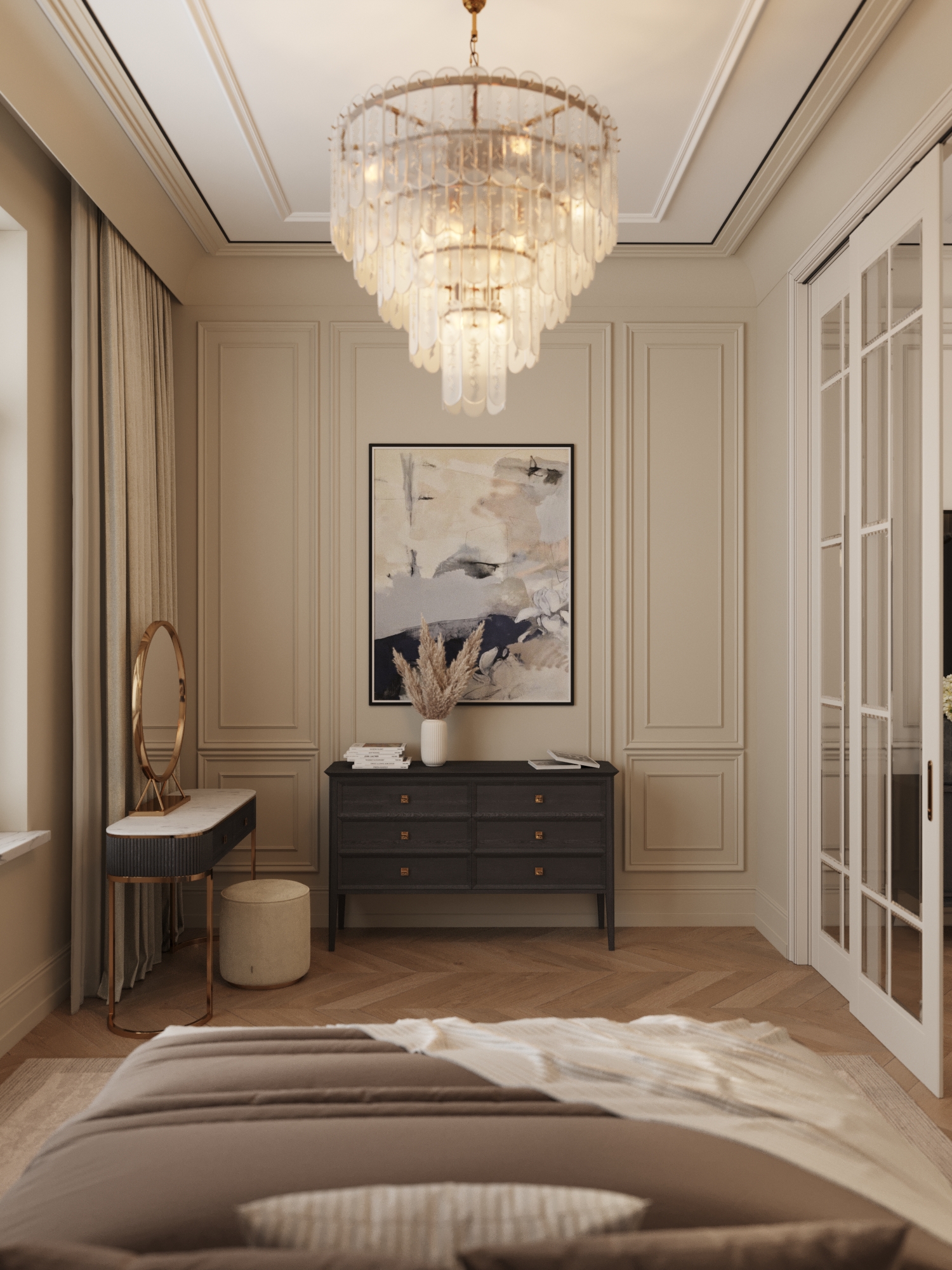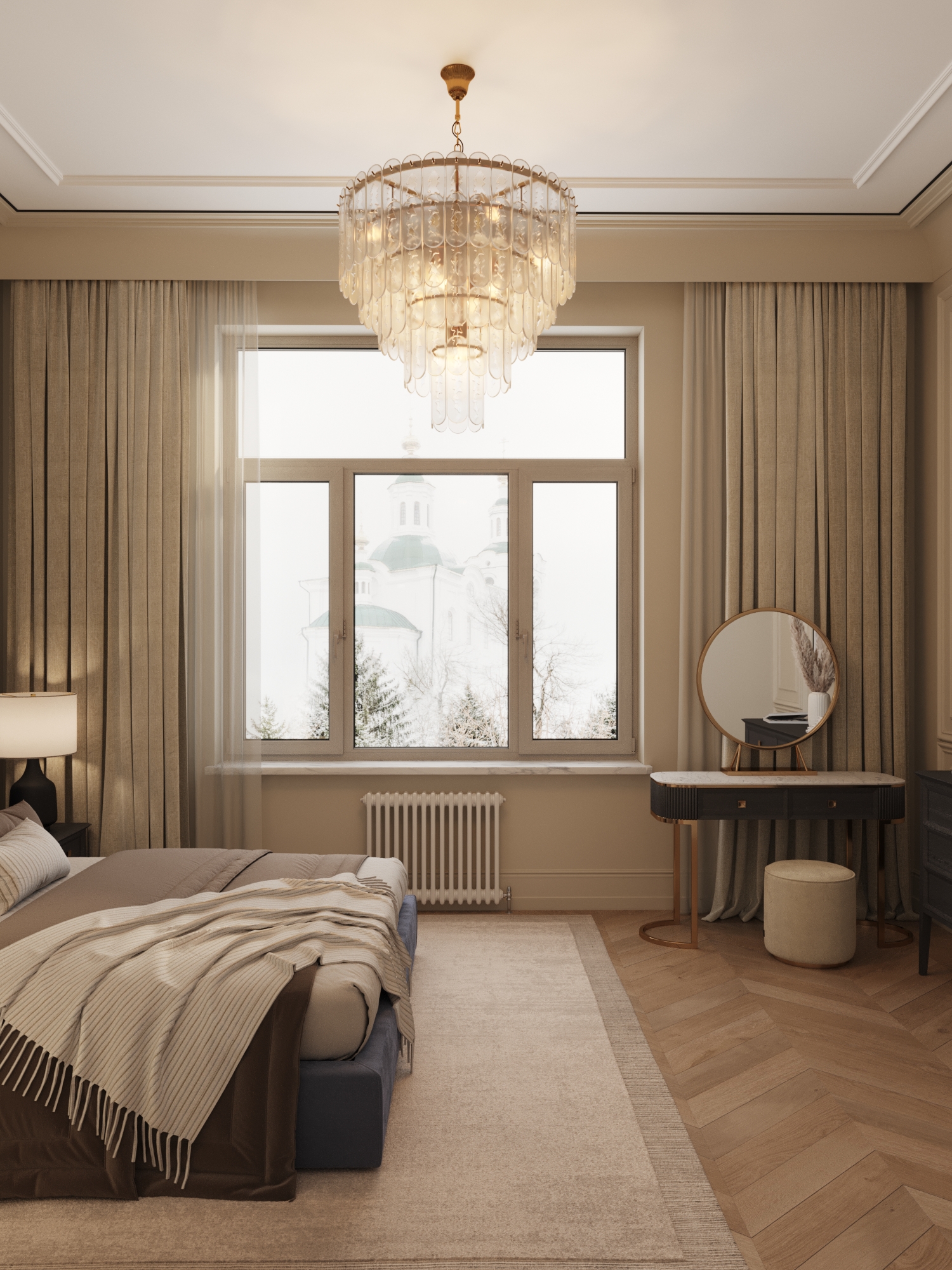 Квартира в классическом стиле, в благородных светлых оттенках с применением натуральных материалов.