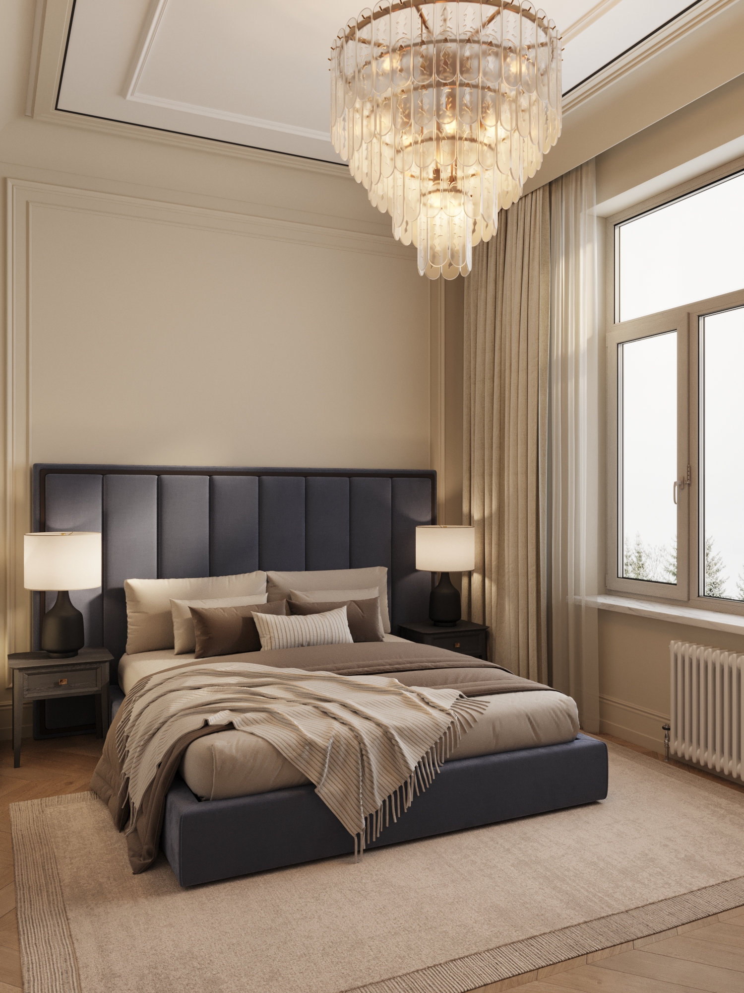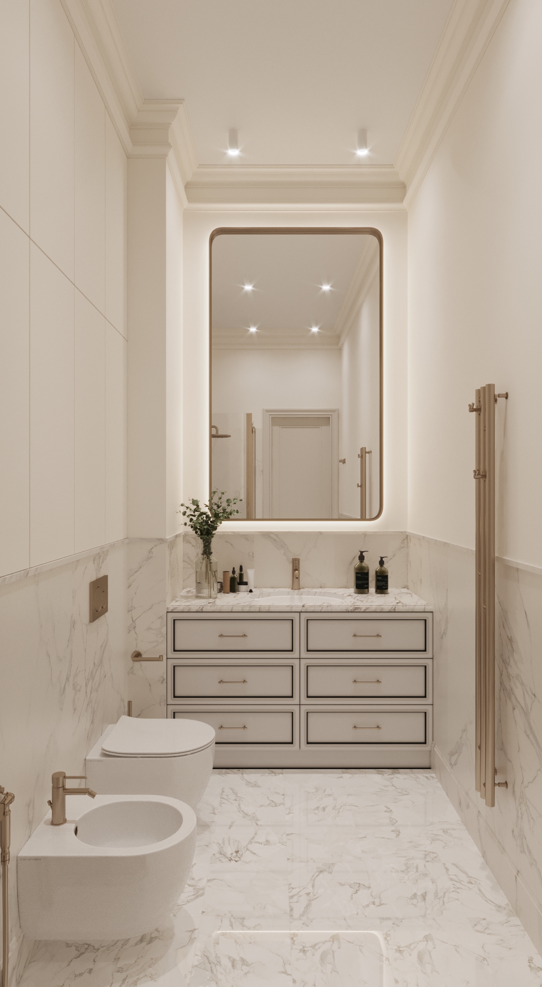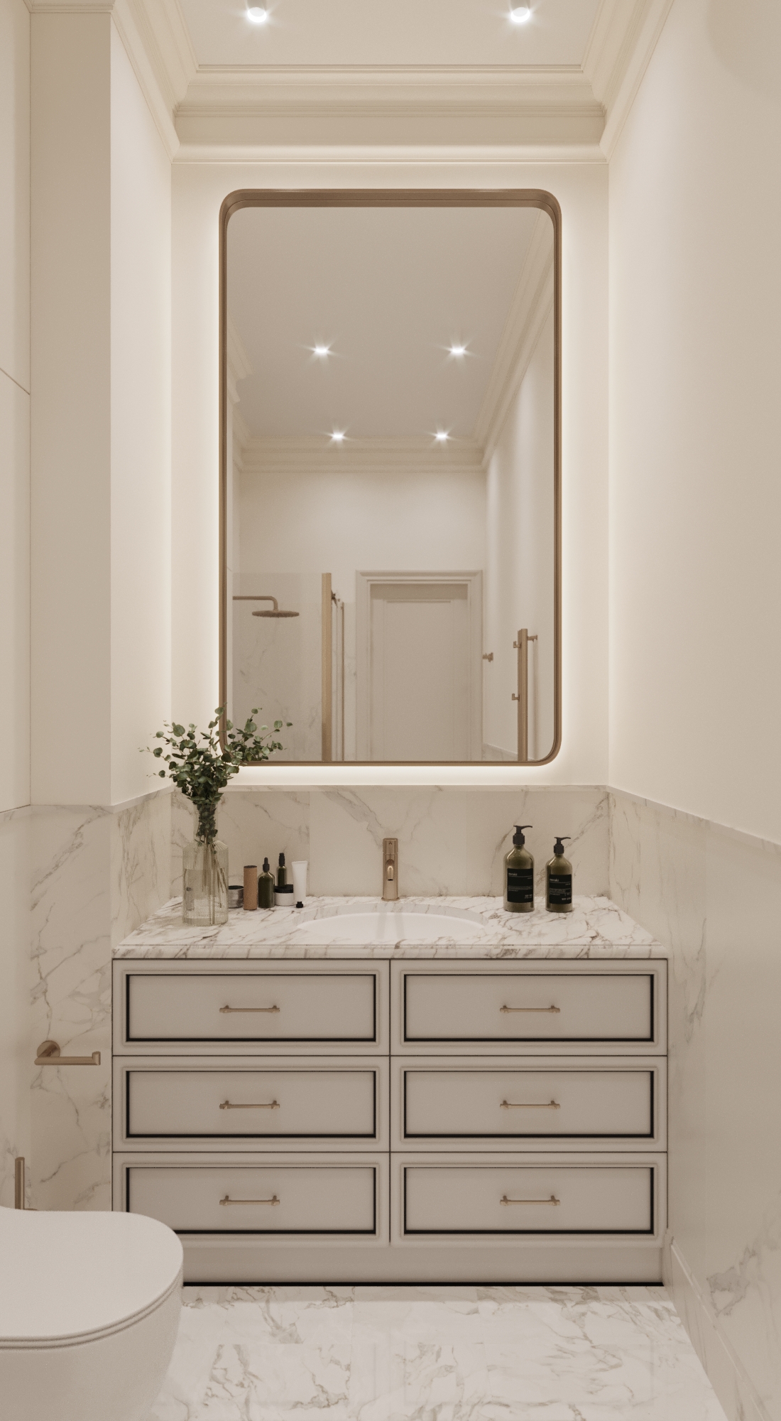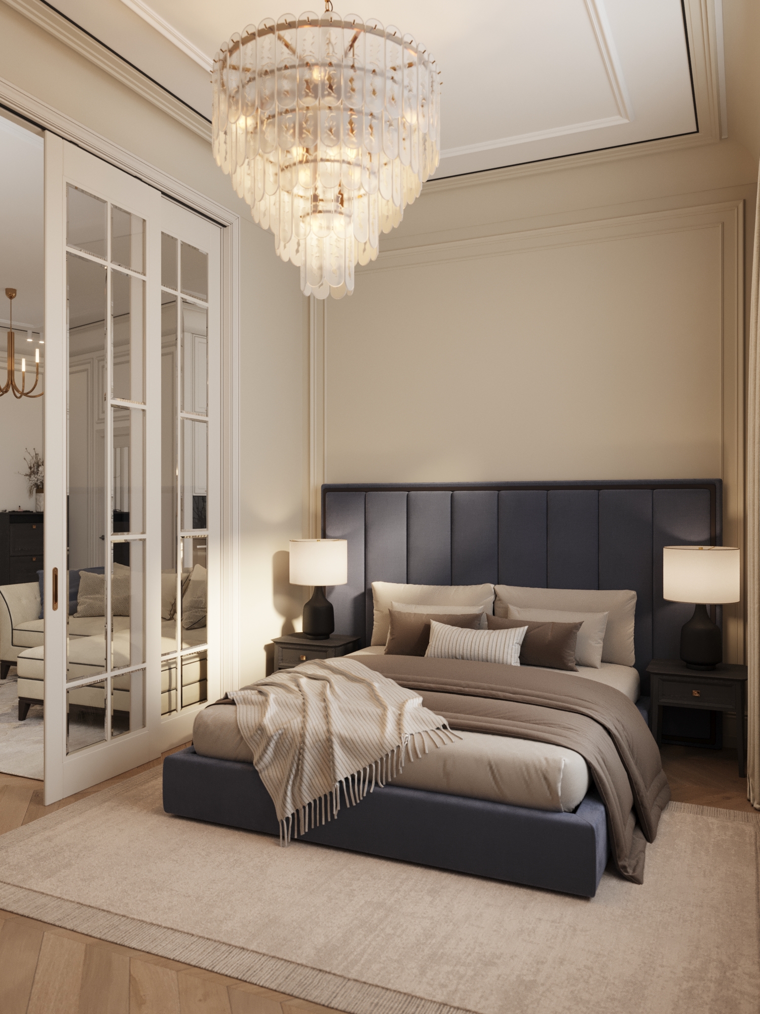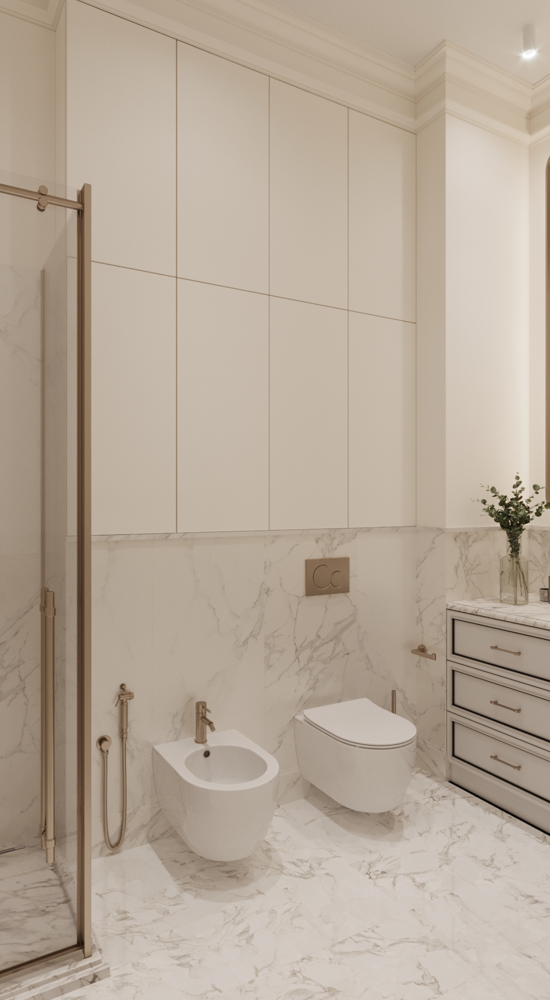 Квартира в классическом стиле, в благородных светлых оттенках с применением натуральных материалов.