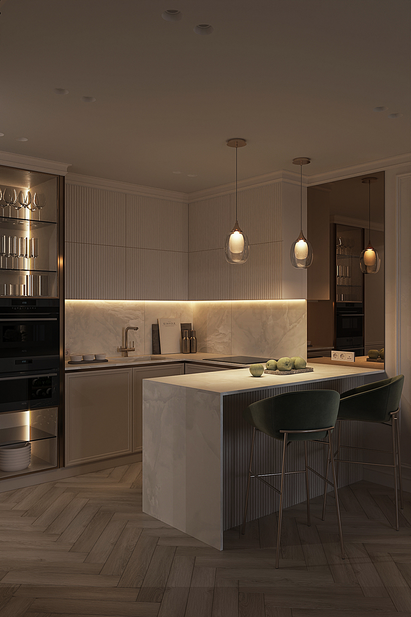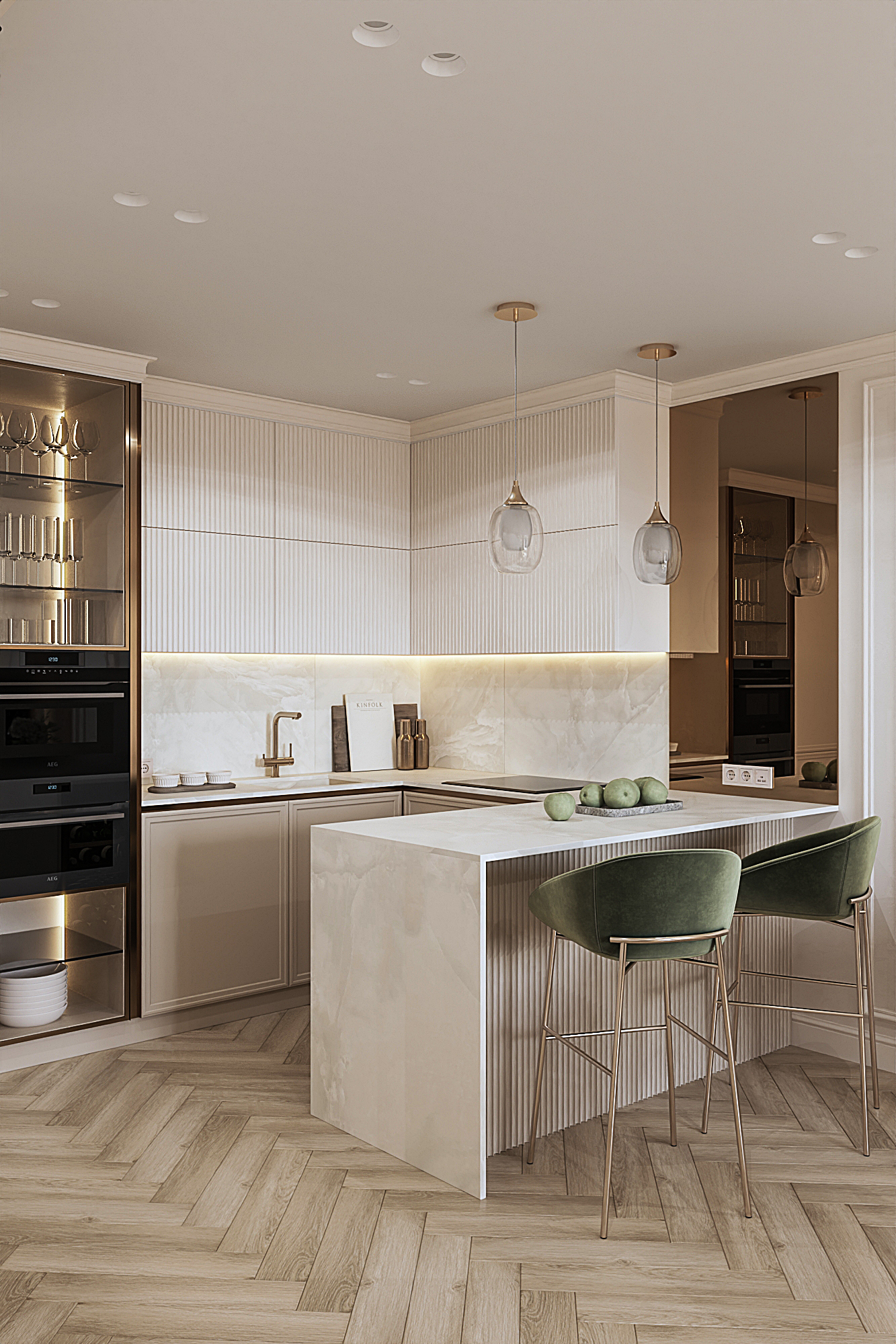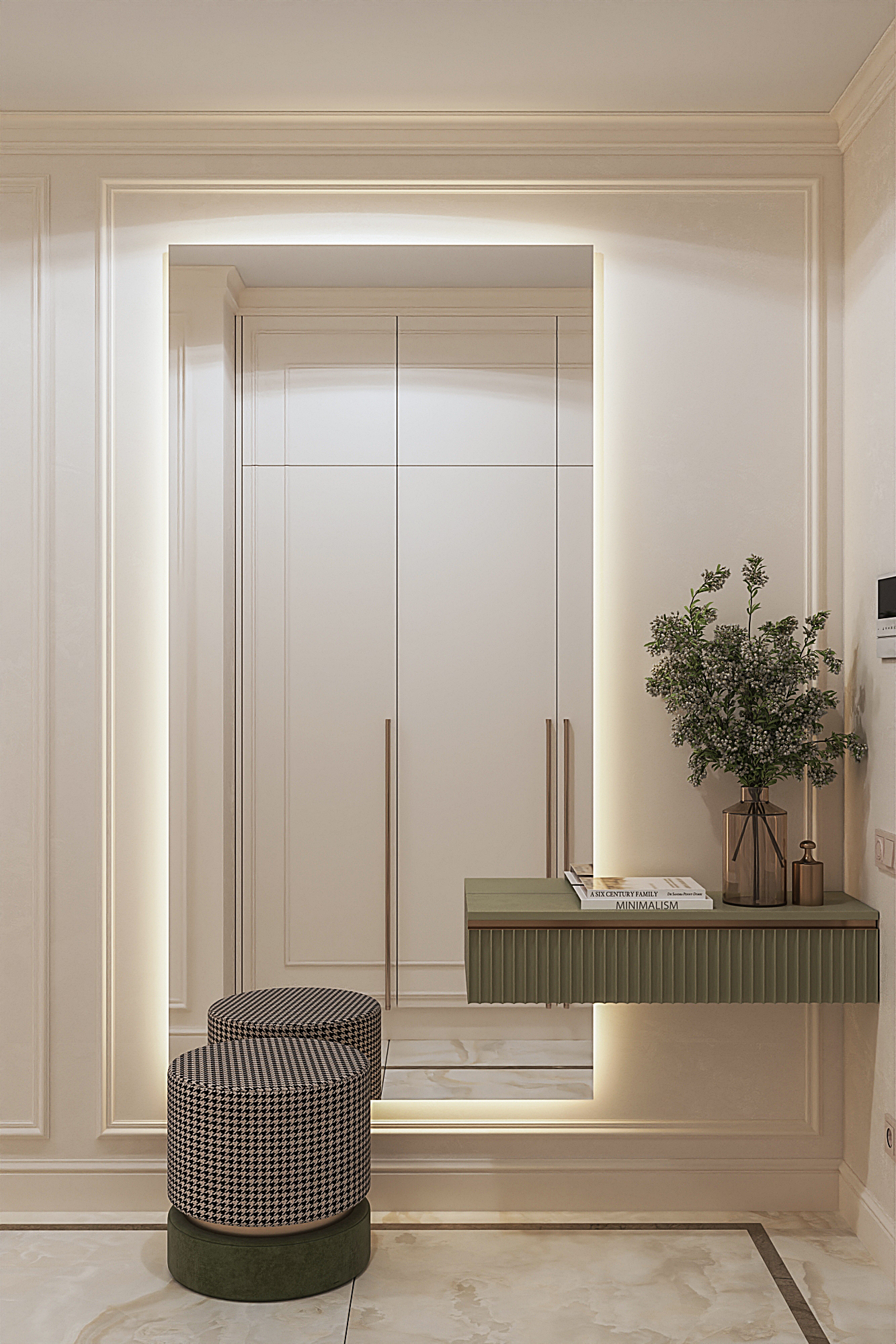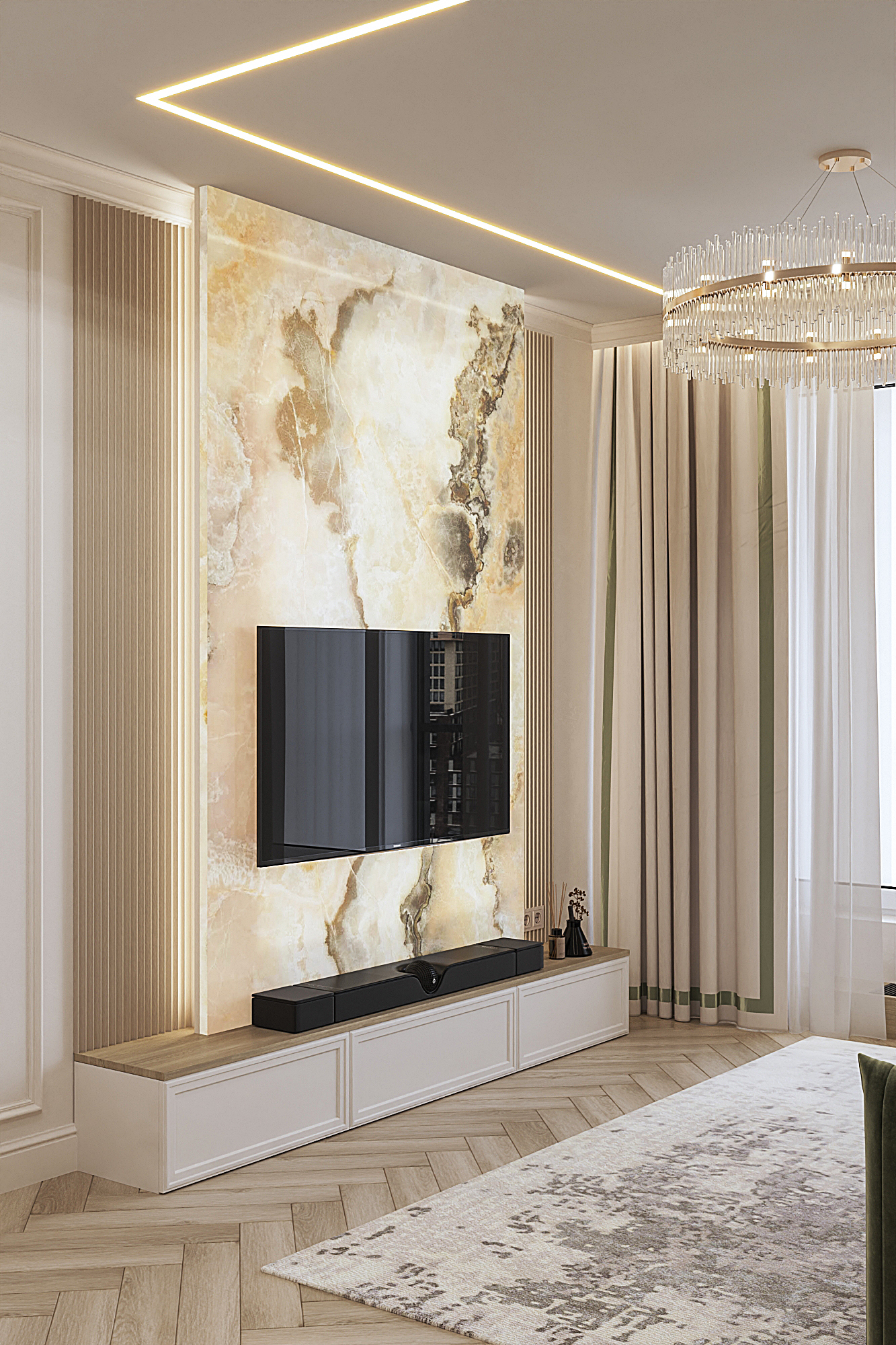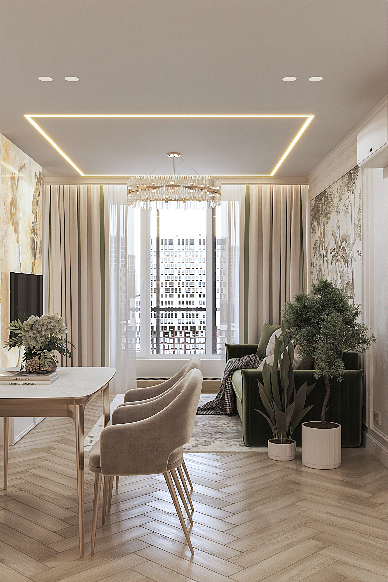 Дизайн квартиры для семьи с двумя детьми в стиле ардеко. Акцентом в дизайне стала композиция с использованием большеформатного керамогранита из белой глины, который пропускаеи мягкий свет. Теплая цветовая гамма, интересные декоративные решения создают сложное многослойное восприятие интерьера, который хочется рассматривать.