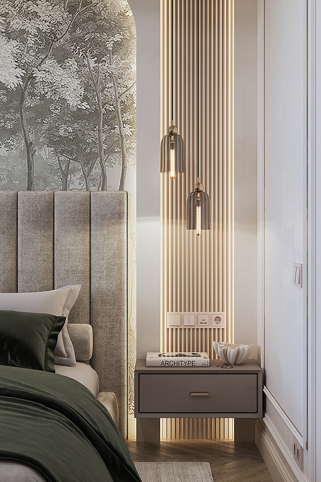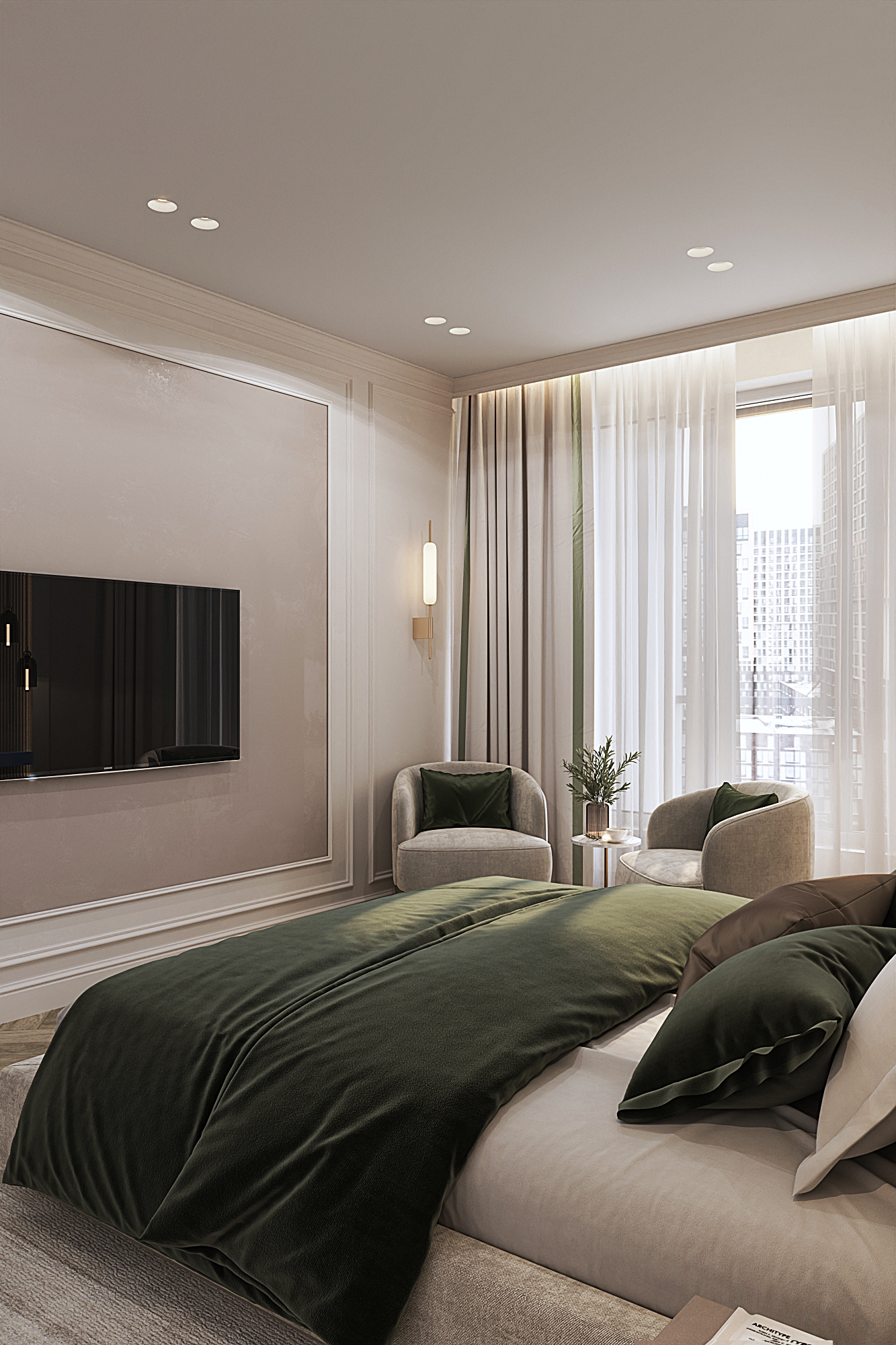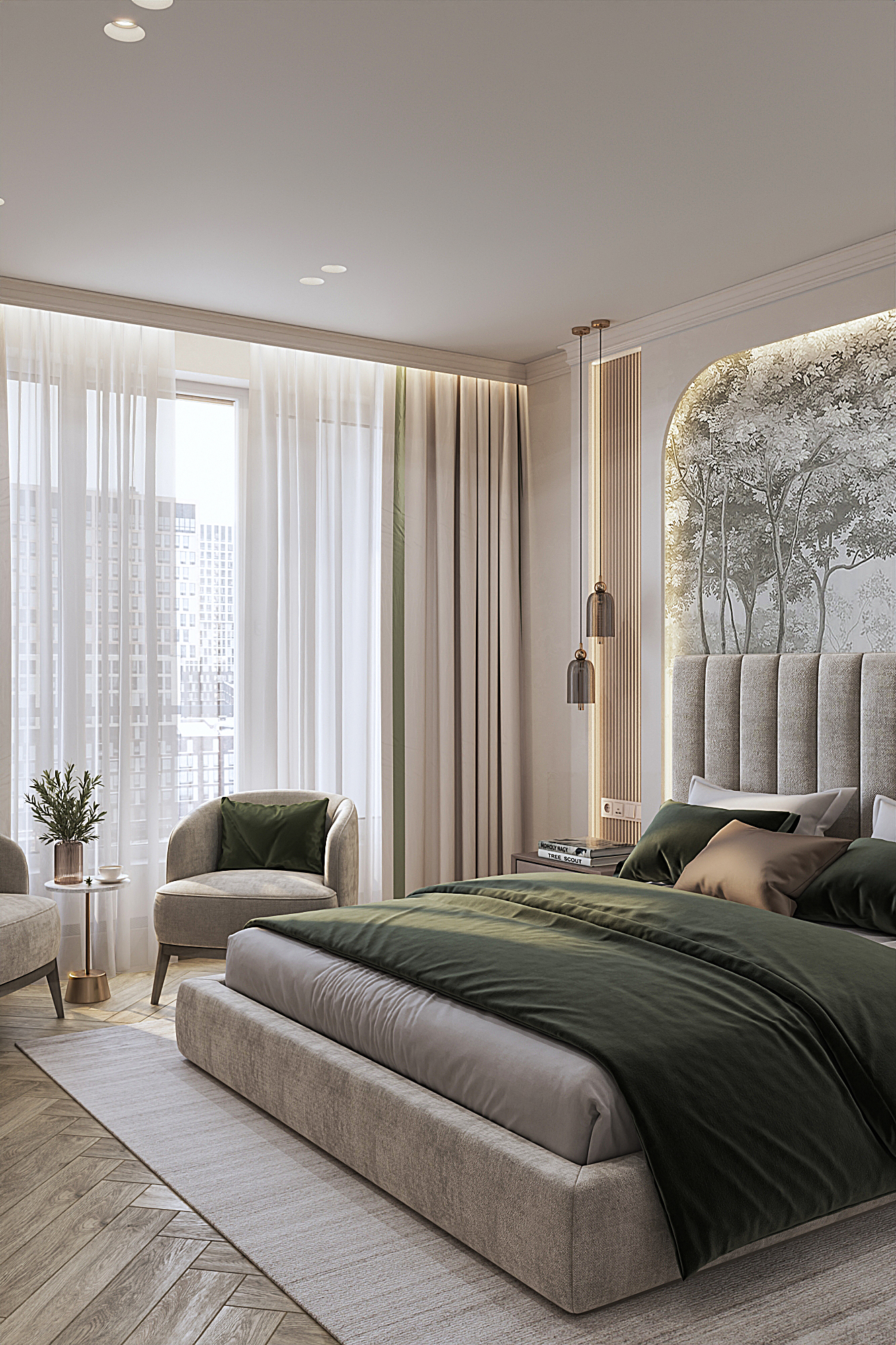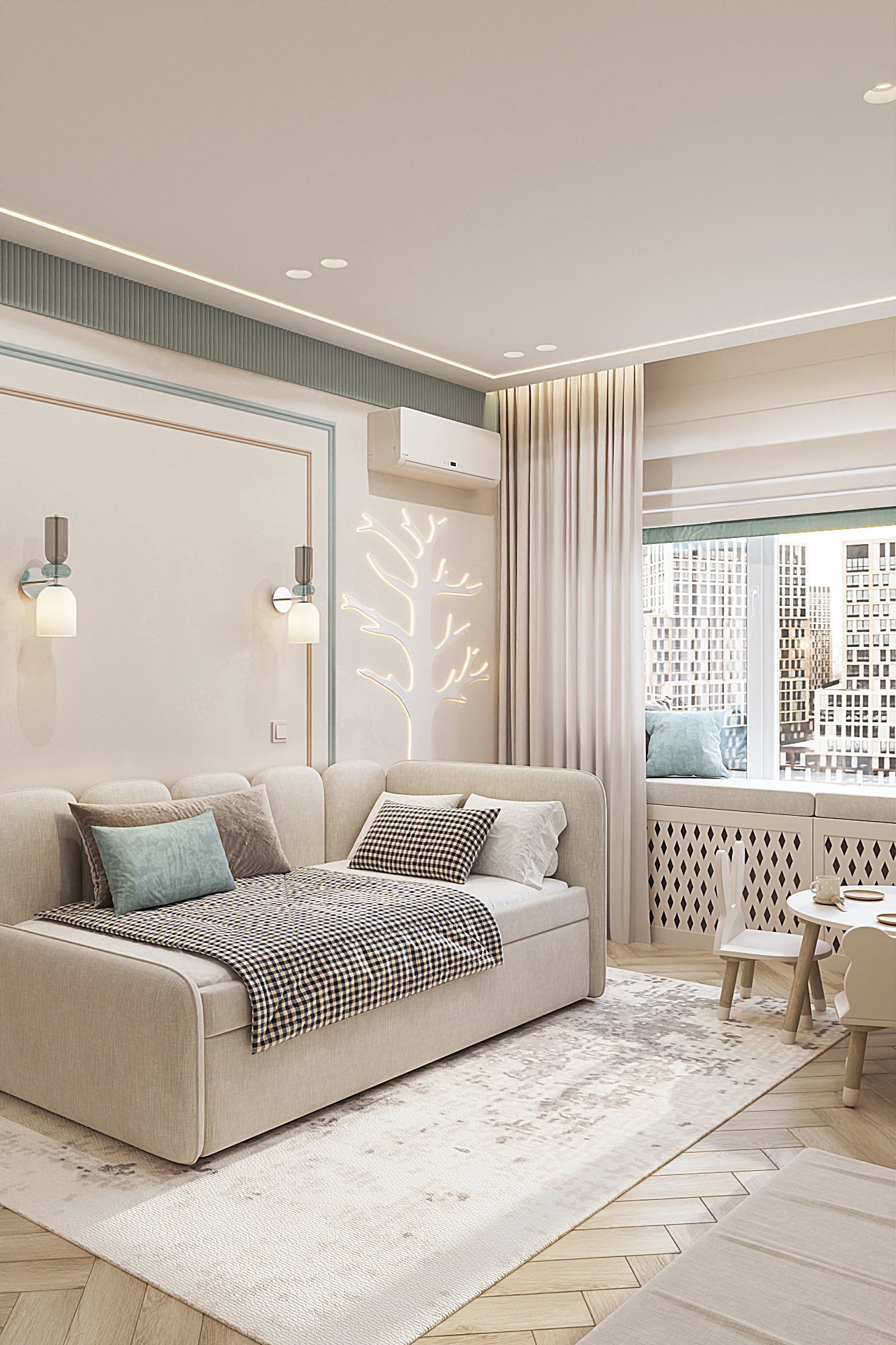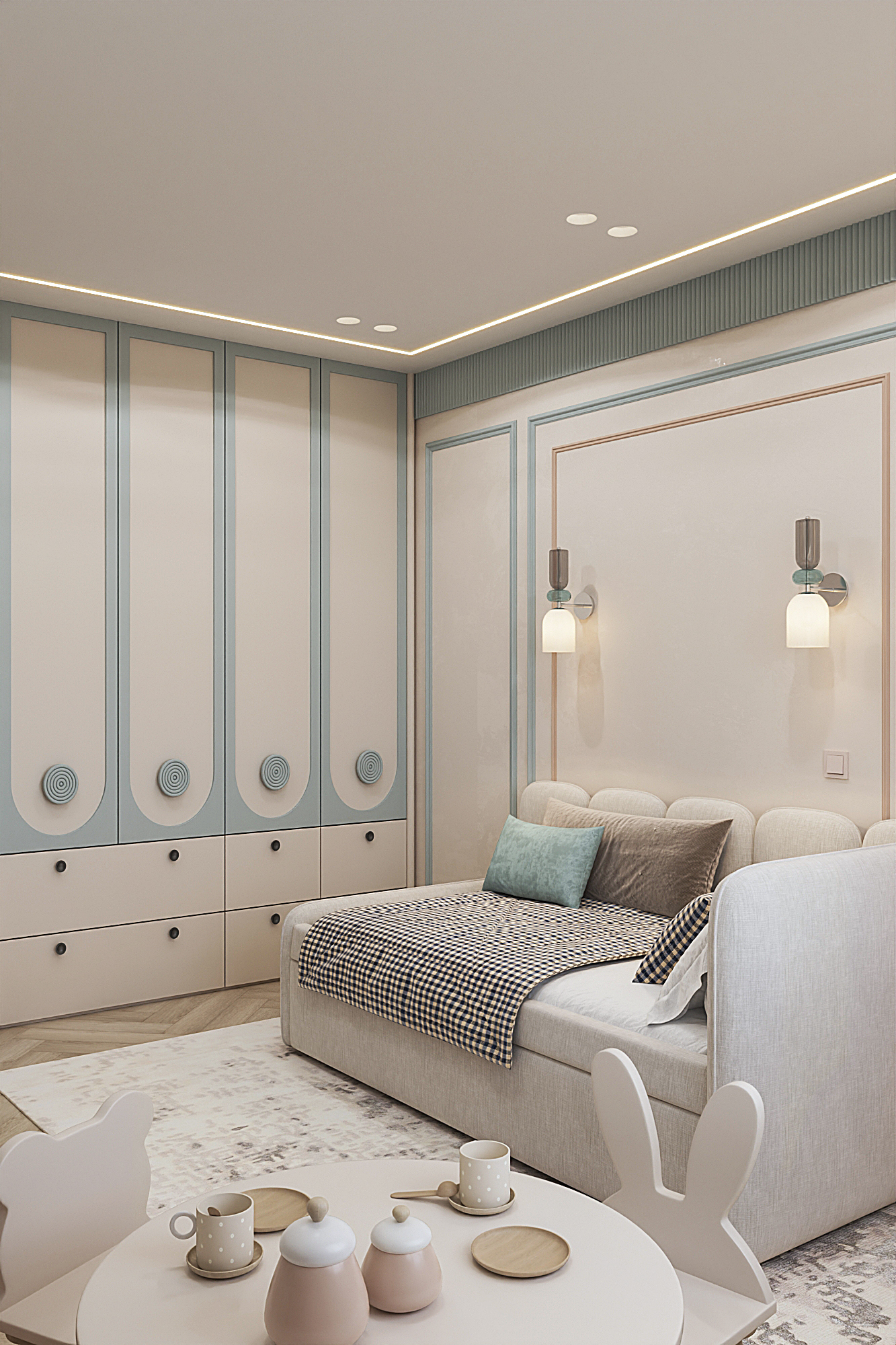 Дизайн квартиры для семьи с двумя детьми в стиле ардеко. Акцентом в дизайне стала композиция с использованием большеформатного керамогранита из белой глины, который пропускаеи мягкий свет. Теплая цветовая гамма, интересные декоративные решения создают сложное многослойное восприятие интерьера, который хочется рассматривать.