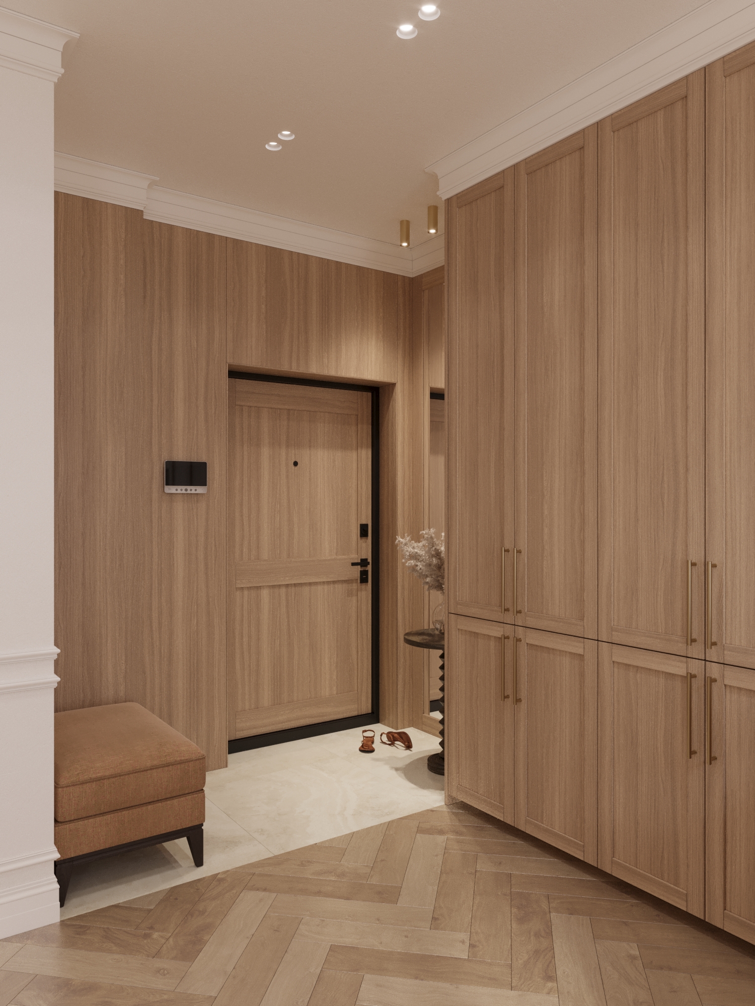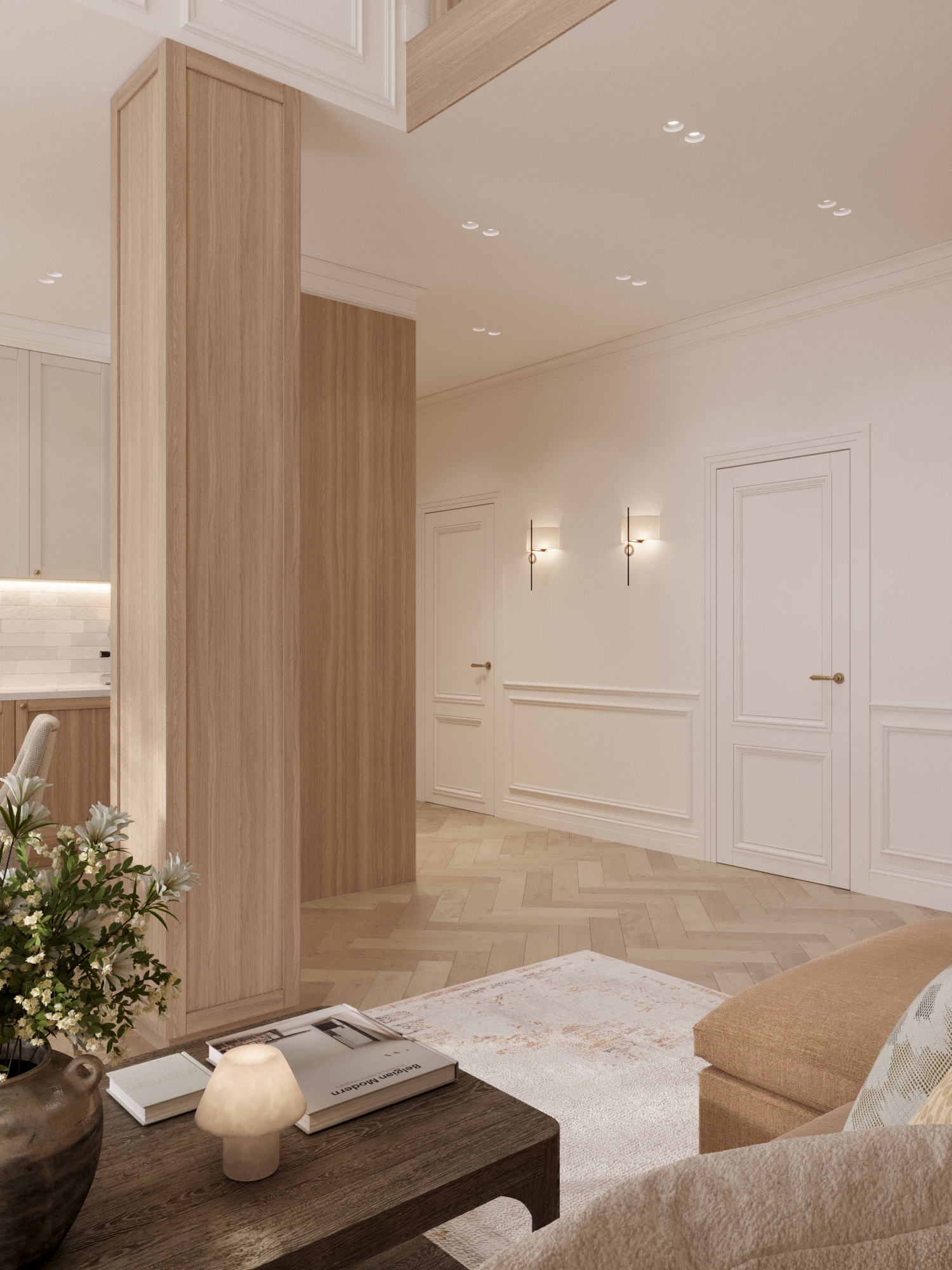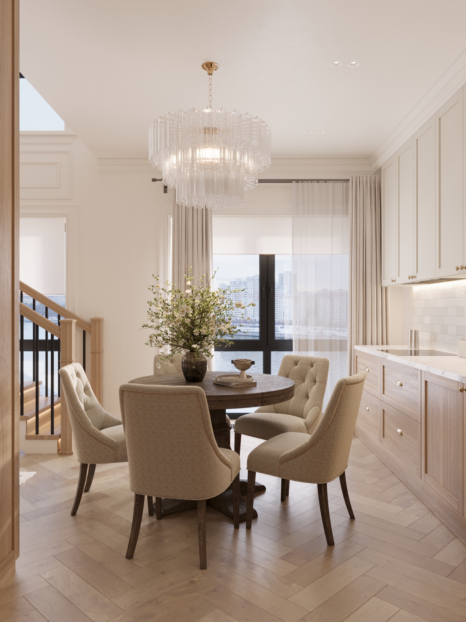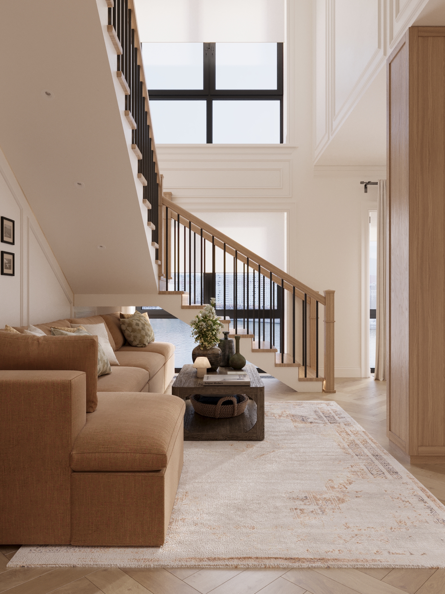 Проект двухуровневой квартиры в Москве, в стилизации под американскую классику в современном прочтении. Использование натуральных материалов в отделки, теплая цветовая гамма создают интерьер наполненый домашним уютом.
