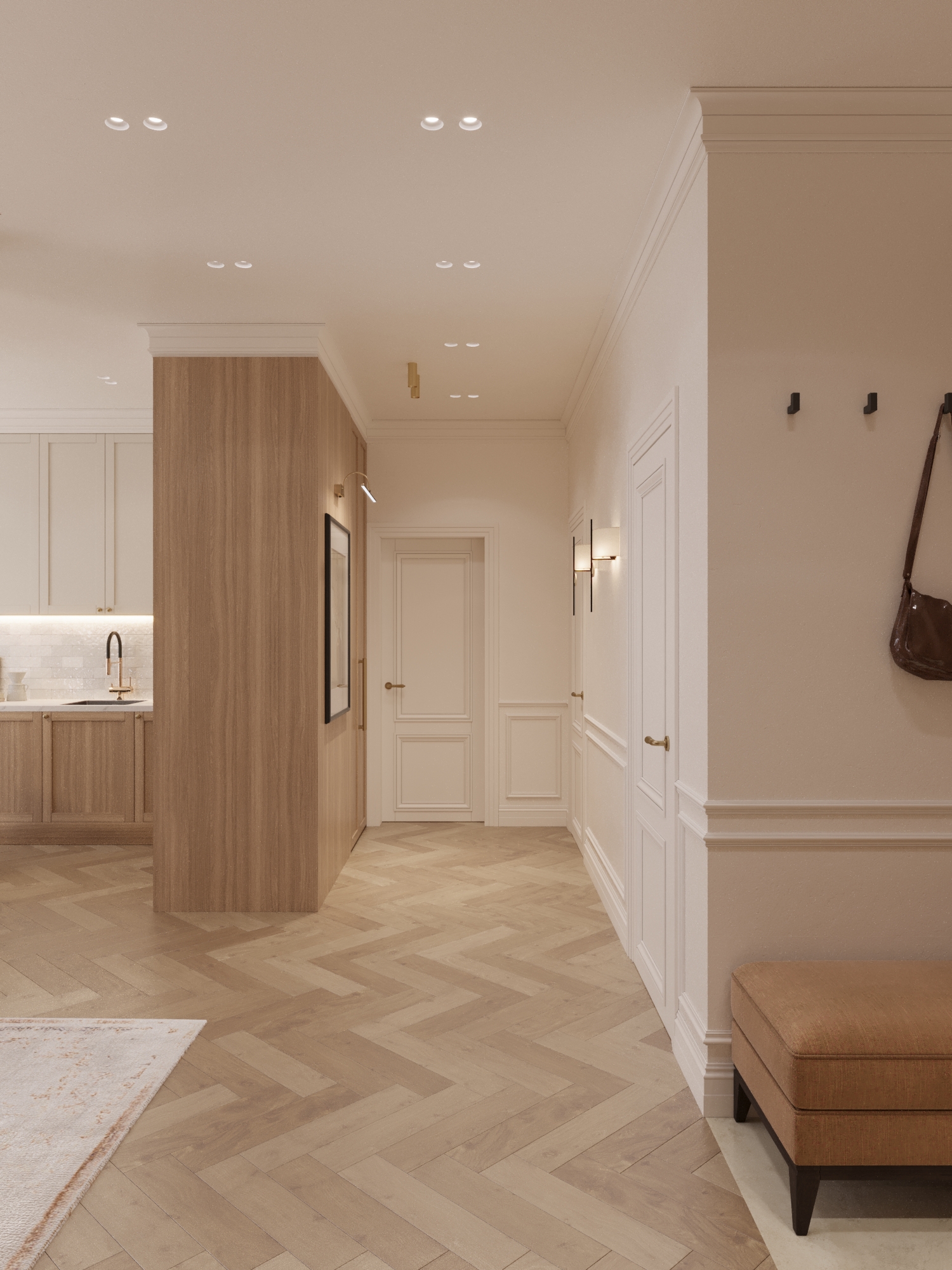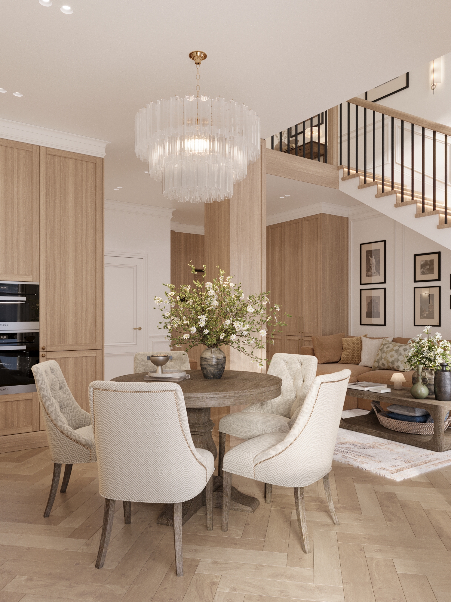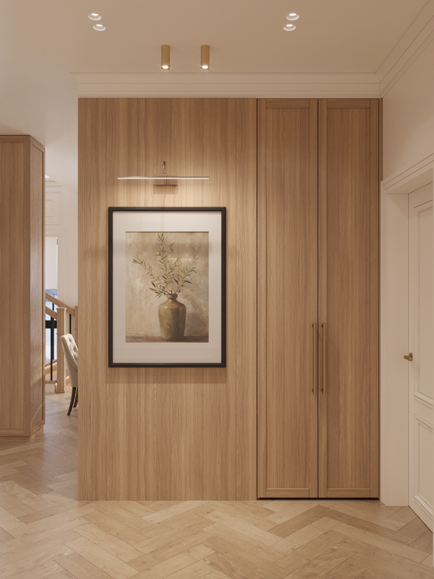 Проект двухуровневой квартиры в Москве, в стилизации под американскую классику в современном прочтении. Использование натуральных материалов в отделки, теплая цветовая гамма создают интерьер наполненый домашним уютом.