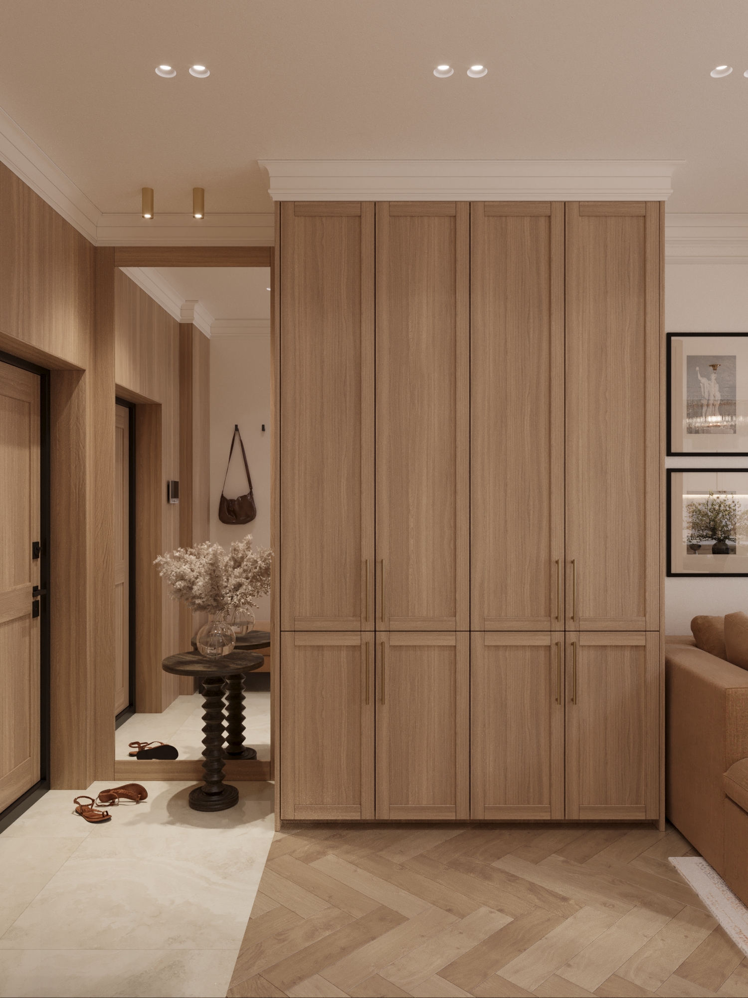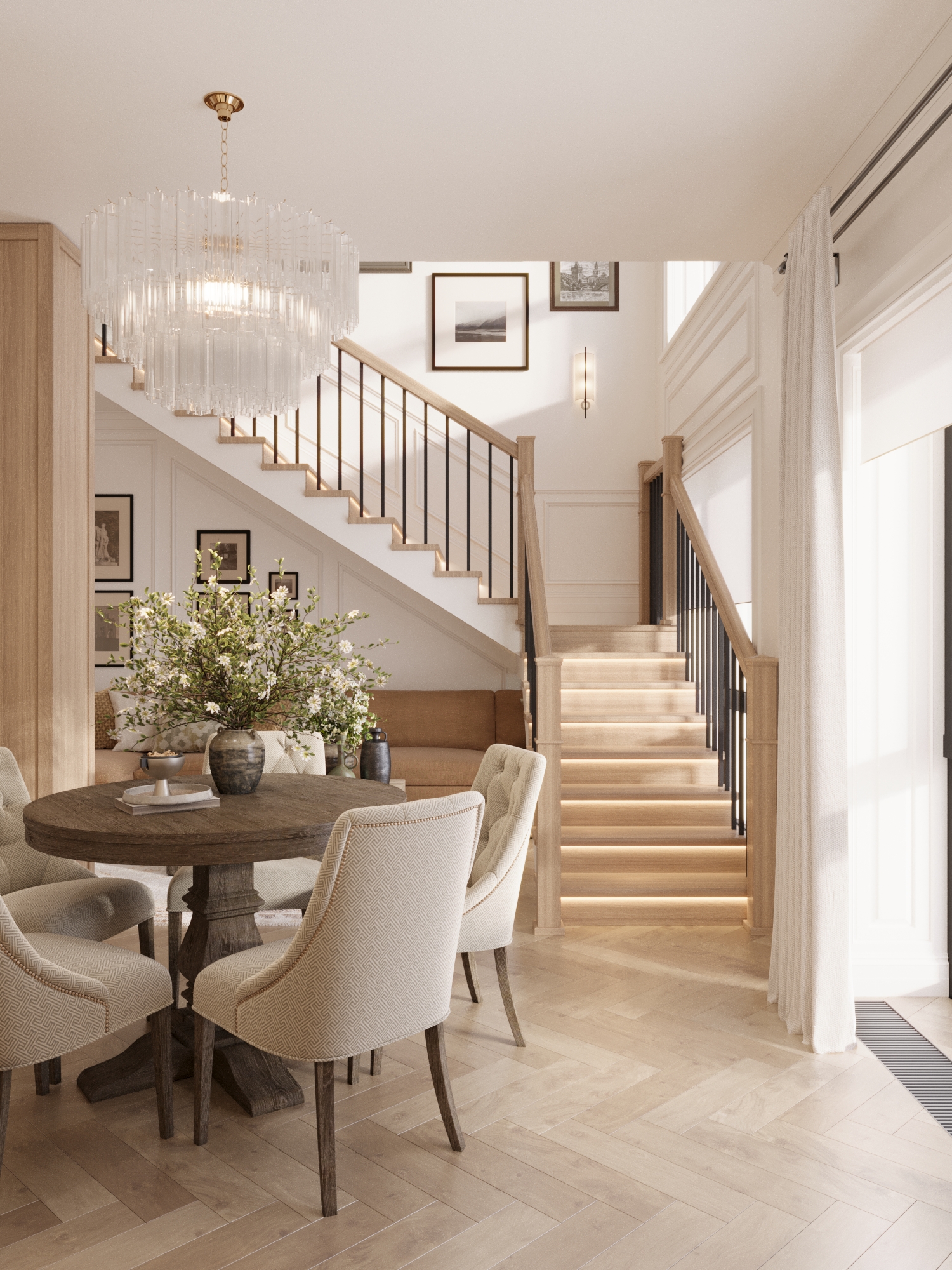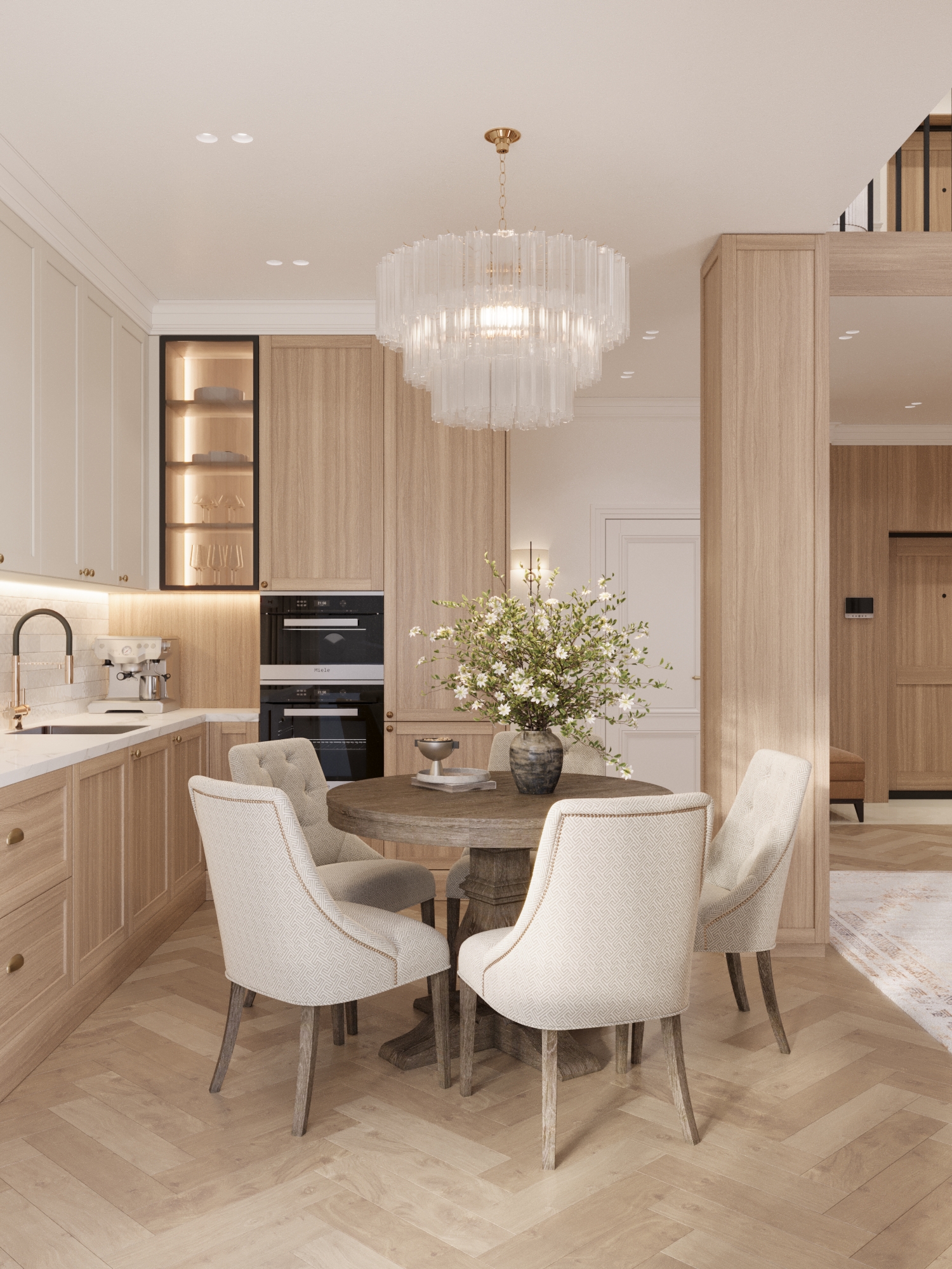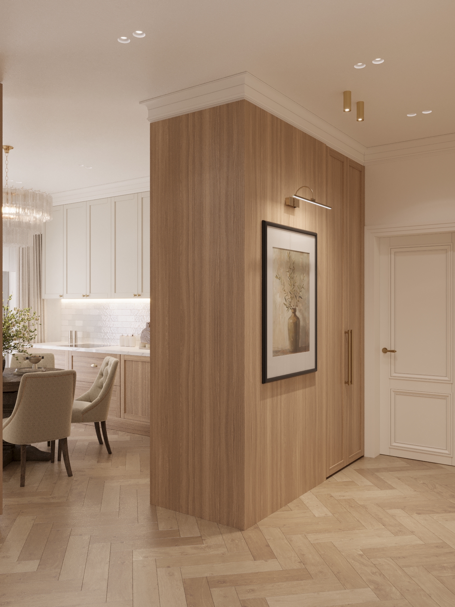 Проект двухуровневой квартиры в Москве, в стилизации под американскую классику в современном прочтении. Использование натуральных материалов в отделки, теплая цветовая гамма создают интерьер наполненый домашним уютом.